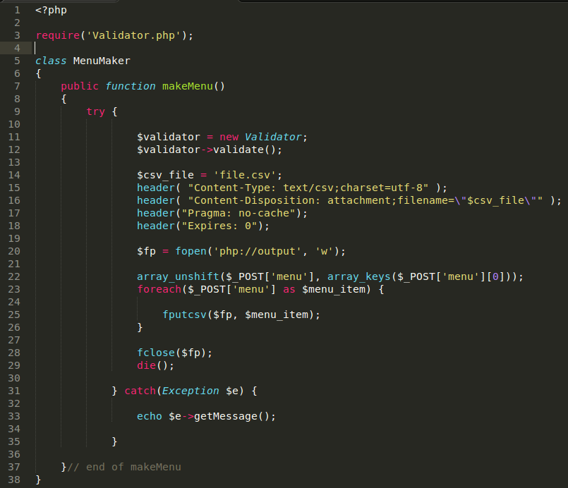 Now that looks much better! Now we can change how we validate to our little heart's content without having the modify the MenuMaker class. Now let's go ahead and do the same for csv exporting.